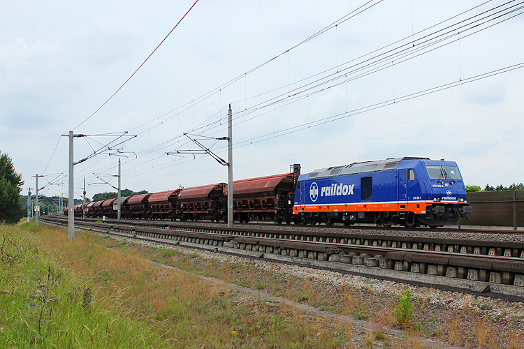 Raildox 76 109 fuhr am 16.06.2016 mit dem meist über Magdeburg fahrenden leeren Düngerzug von Baro Bülstringen nach Poppendorf in Richtung Stendal. |