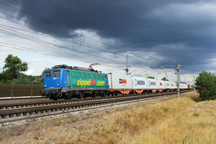 EGP 140 838 "Zippel" fuhr am 29.08.2016 mit einem Containerzug nach Bremerhaven westwärts. |