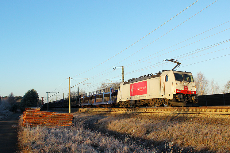 Mit dem fast leeren Mazdazug DGS 42586 Antwerpen - Wustermark fuhr am 03.12.2016 Crossrail 186 150 ostwärts. |