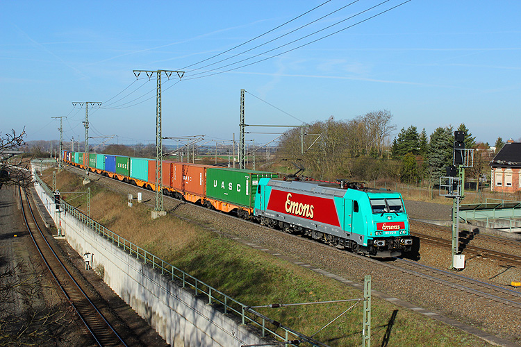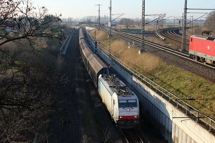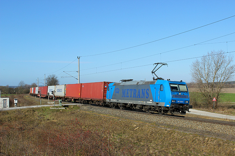 Eine Stunde später folgte noch die Metrans 185 510 mit einem Containerzug aus Hamburg kommend, 08.03.2014. |