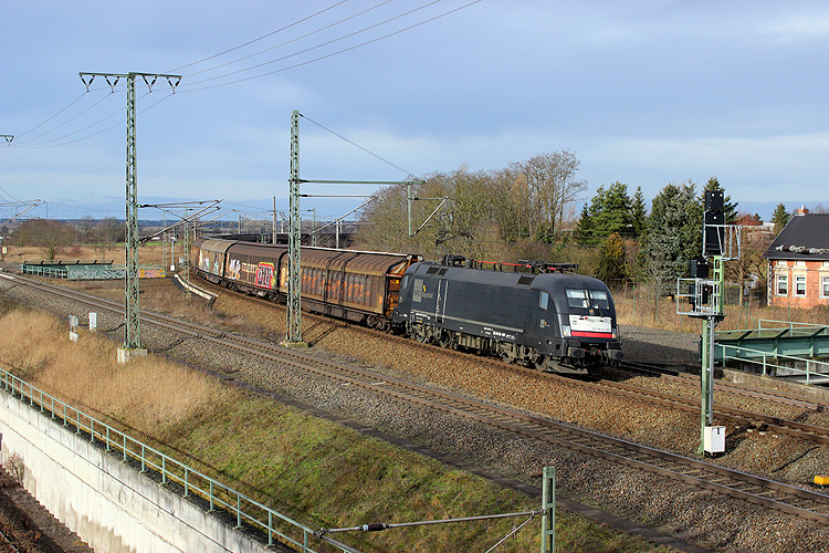 Am 09.02.2014 war MRCE ES64U2-097 für die Beförderung des TXL-Zellstoffzuges von Rostock nach Pordenone zuständig. |