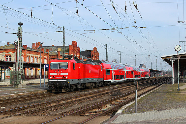 Sehr selten geworden sind Einsätze der 143 von DB-Regio im Raum Stendal. Am 01.03.2014 kam 143 558 mit dem verspäteten RE 17616 aus Halle (S) und fuhr sogleich weiter nach Uelzen. |