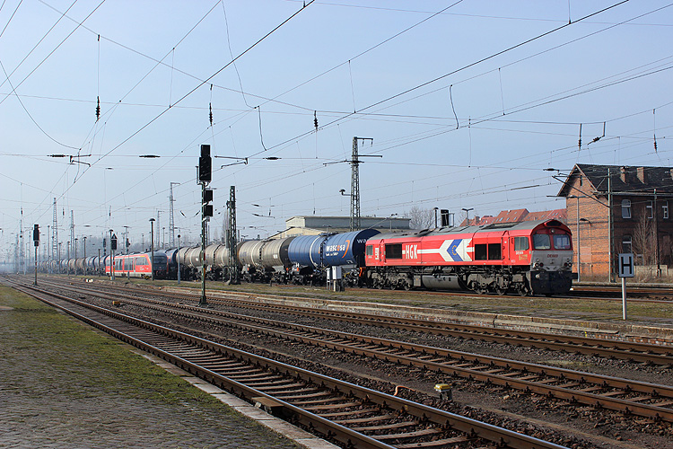 Gelegentlich fährt der tägliche HGK-Kesselzug von Hamburg nach Stendell auch mal mit Diesel, wie hier am 07.03.2014 mit DE669. |
