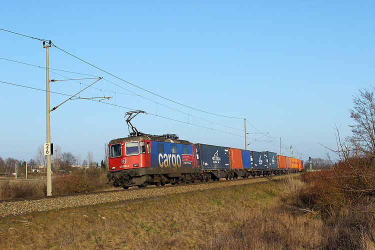 Am Abend des Tages fuhr noch 421 395 der SBB-Cargo mit einem Containerzug in Richtung Salzwedel, 09.03.2014. |