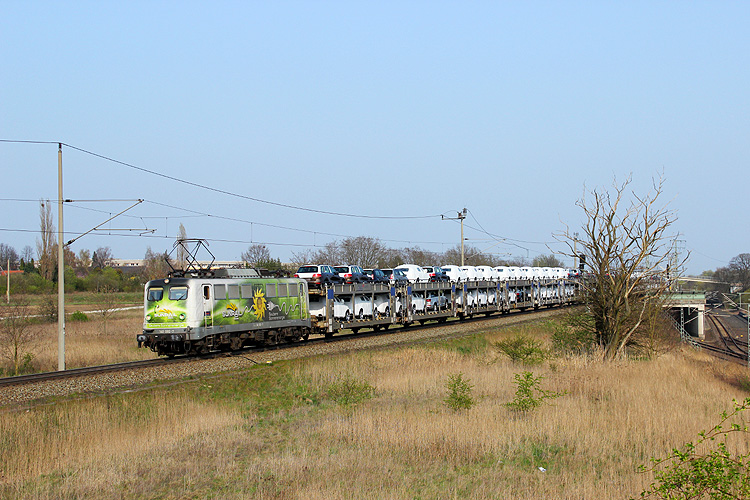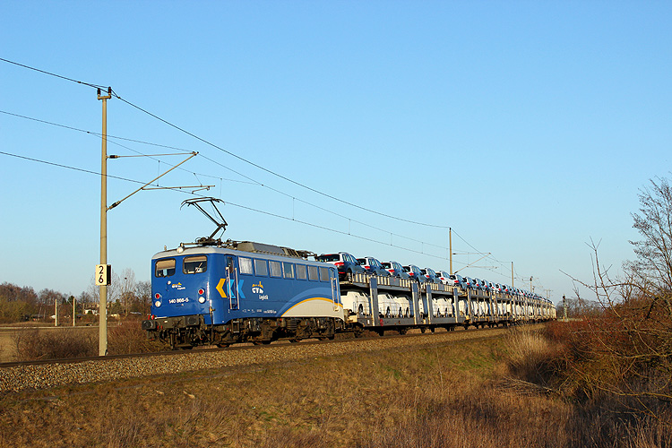 Mit einem BLG-Autotransport fuhr die EVB 140 866 am 11.03.2014 in Richtung Salzwedel weiter. |