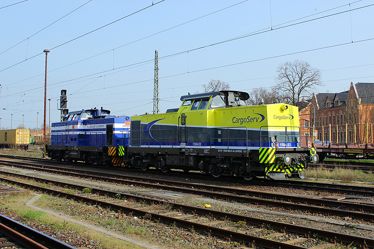 Auch von weit her kommen Loks zum Besuch des Alstom-Werkes nach Stendal. Am 02.04.2014 traten die 45 der Augsburger Localbahn zusammen mit der österreichischen 1504.02 von CargoServ die Heimreise über Magdeburg an. |