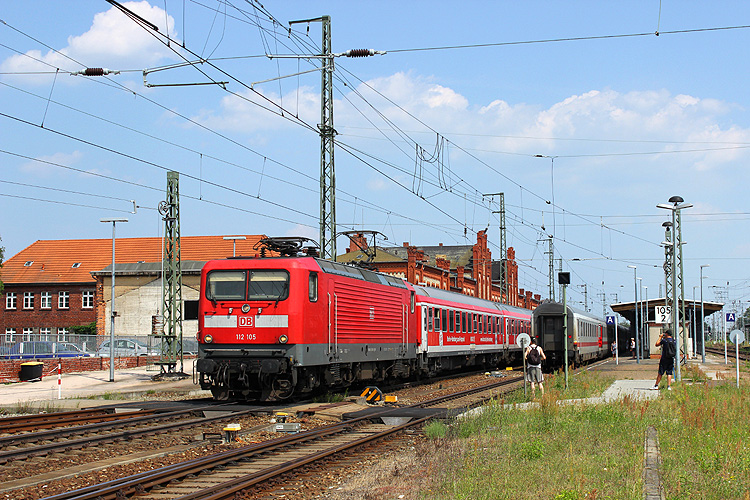 Fast zwei Wochen fuhr der IRE Berlin - Hamburg mit der Baureihe 112, weil die bisherige Stammlok 182 570 an MRCE zurückgegeben wurde. Am 20.07.2014 brachte 112 105 den IRE 18598 nach Hamburg. |