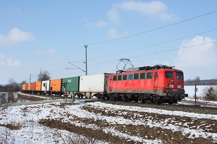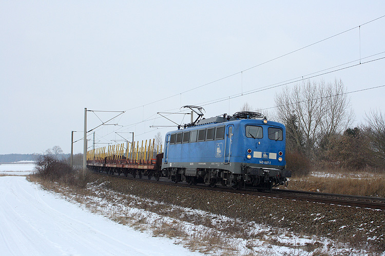 140 070 der EBM kam am 15.03.2013 mit einem Containerzug aus Richtung Salzwedel angerollt. |