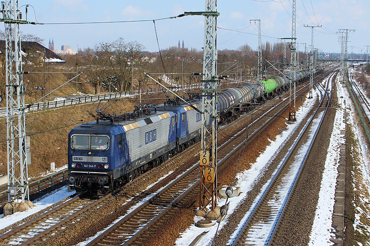 Das RBH-Doppel 121+112 (143 048 + 638) durchfuhren am 15.03.2013 mit einem Kesselzug nach Hamburg über Wittenberge Stendal. |
