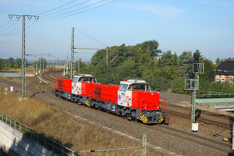 Nach der Aufarbeitung im Alstomwerk Stendal machten sich die BB61022 + 61014 der VFLI auf die Heimreise nach Frankreich, die dieses Mal über Salzwedel-Uelzen-Soltau ging, 14.09.2013. |