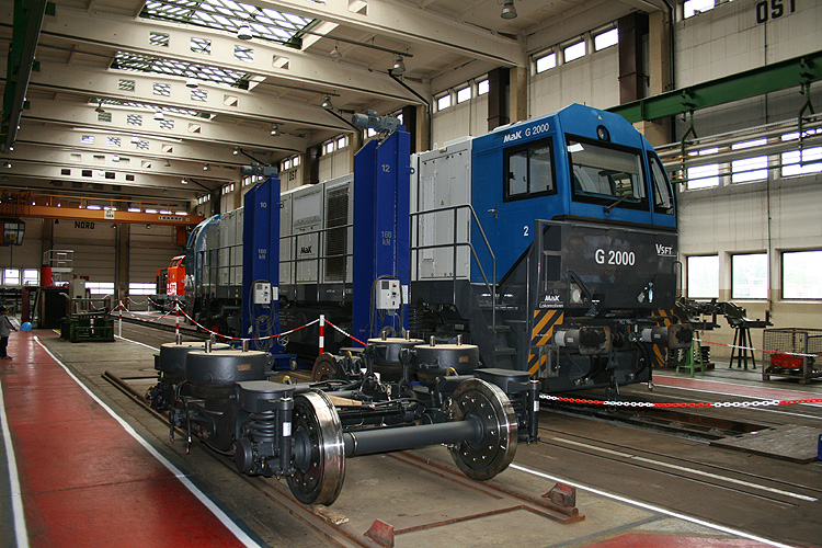 Am 21.09.2013 gab es im Stendaler Alstomwerk einen Tag der offenen Tür. In Halle 23 gab es unter anderem diese G 2000 im Hubstand zu sehen. |