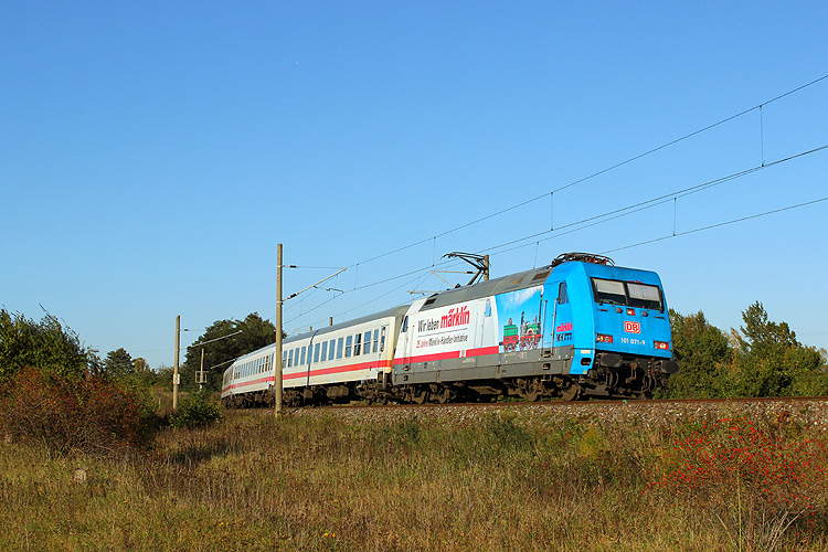 Die "Märklin" 101 071 war am 11.10.2015 für die Bespannung des IC 2239 "Warnow" Rostock - Leipzig zuständig. |