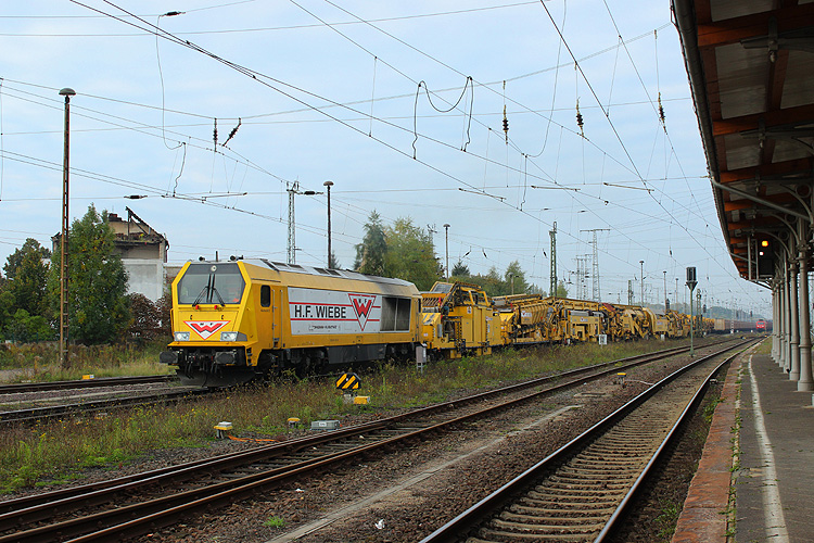 Die Firma Wiebe war im Oktober 2015 mit Gleisbauarbeiten zwischen Stendal und Magdeburg betraut. Am 18.10.2015 brachte 264 011 die Technik zum Einsatzort. |