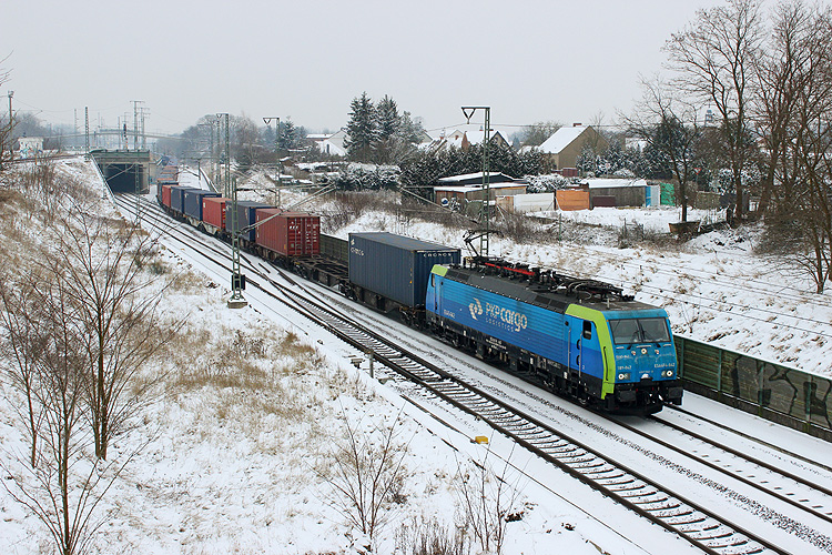 Kurz darauf verließ 189 842 der PKP-Cargo mit dem Containerzug nach Rheinhausen Stendal in Richtung Oebisfelde. |