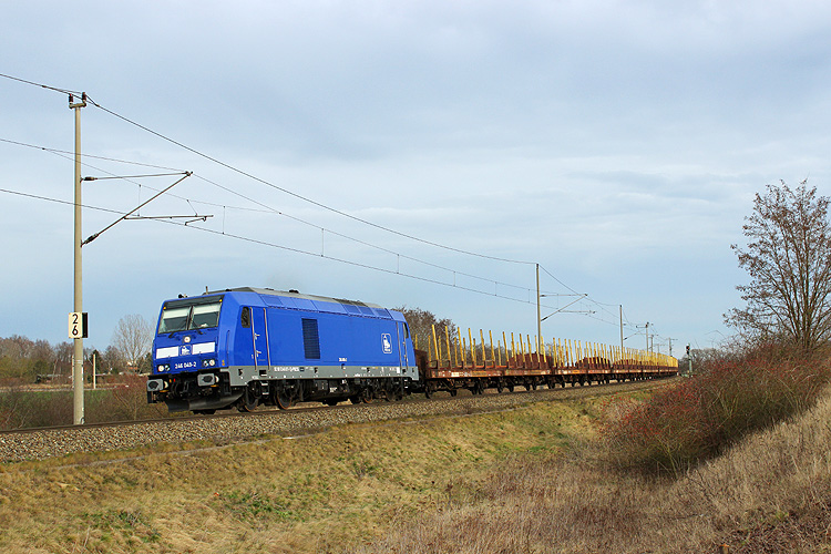 Nun als 246 049 in blau für die Press unterwegs - die einstige 246 011 der IGT. Am 07.02.2016 hatte sie mit dem Leerzug Niedergörne - Lübeck im Güterbahnhof Kopf gemacht und fuhr über Salzwedel weiter. |