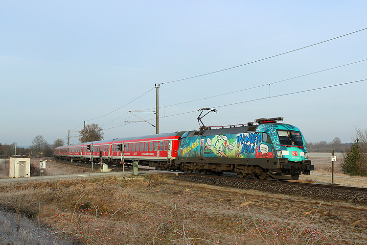 Die "BUGA" 182 013 lief im Winter 2015/16 längere Zeit im IRE-Dienst zwischen Berlin und Hamburg, hier rollt sie am Morgen des 27.02.2016 mit dem IRE 4273 aus Richtung Salzwedel ein. |