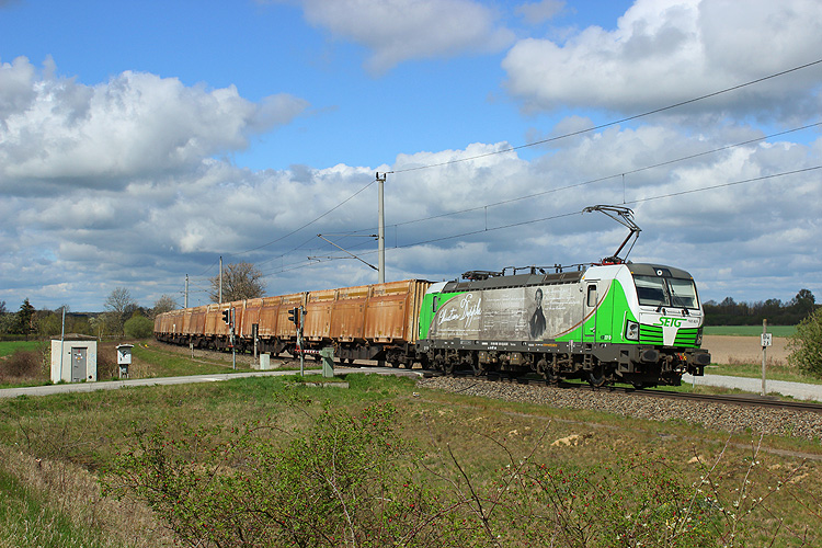 Früh dran war am 17.04.2016 der Hackschnitzelzug aus Lübeck, der normalerweise nachmittags in Stendal ankommt. 193 831 "Christian Doppler" der SETG rollte aber überraschend schon am Vormittag aus Richtung Salzwedel ein. |