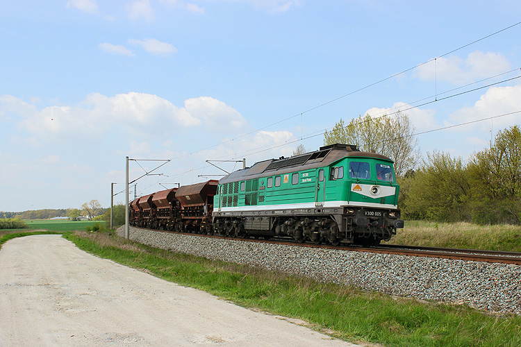 Mit einem leeren Kieszug fuhr V 300 005 der SBW am 01.05.2016 aus Richtung Wittenberge kommend in Richtung Magdeburg durch. |