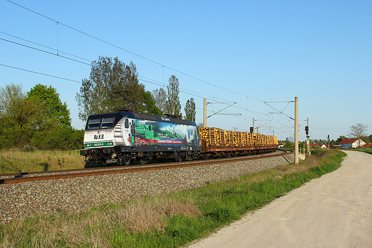 Den Holzzug aus Frankfurt/Oder brachte am 07.05.2016 der "Rasende Roland" 145 023 der Press nach Borstel. |