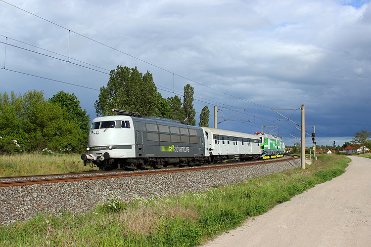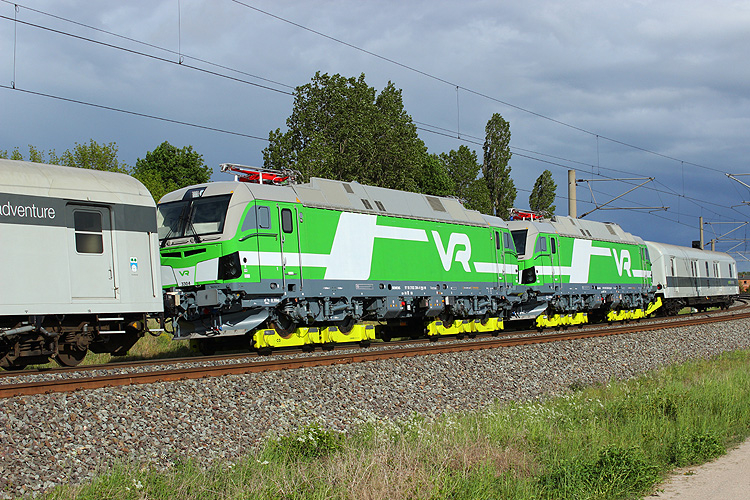 Railadventure 103 222 überführte am 15.05.2016 zwei neue Vectron-Lokomotiven für die finnische Staatsbahn von Erfurt nach Rostock. |