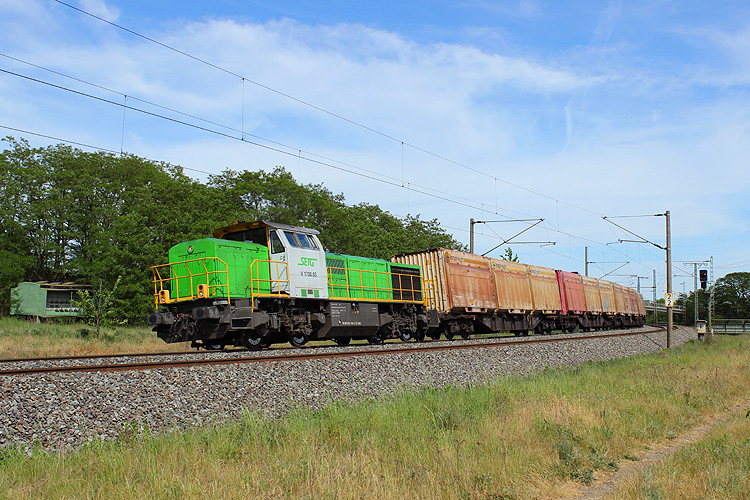 V 1700.03 der SETG kam am 22.05.2016 mit dem Hackschnitzelzug aus Lübeck nach Stendal und brachte diesen nach dem Kopfmachen noch nach Niedergörne. |