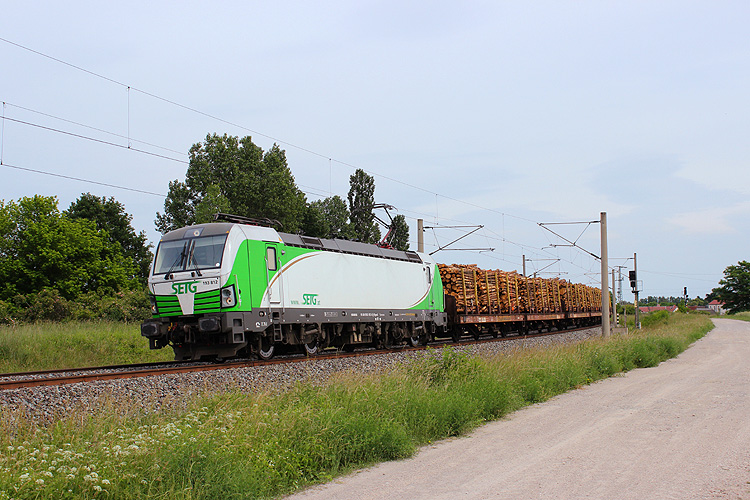 SETG 193 812 kam am 12.06.2016 mit einem Holzzug aus Lübeck nach Stendal und brachte diesen noch bis Borstel. |