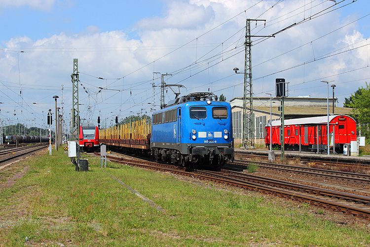 Nach langer Pause lief am 26.06.2016 mal wieder eine Press-140 im Holzverkehr - 140 008 mit dem Leerzug nach Frankfurt / Oder. |