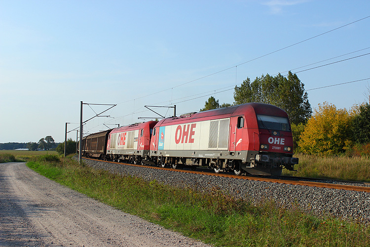 Mit einem Zellstoffzug aus Niedergörne rollte am 04.09.2014 das ER 20-Doppel OHE 270081 + 270080 in Stendal ein. |