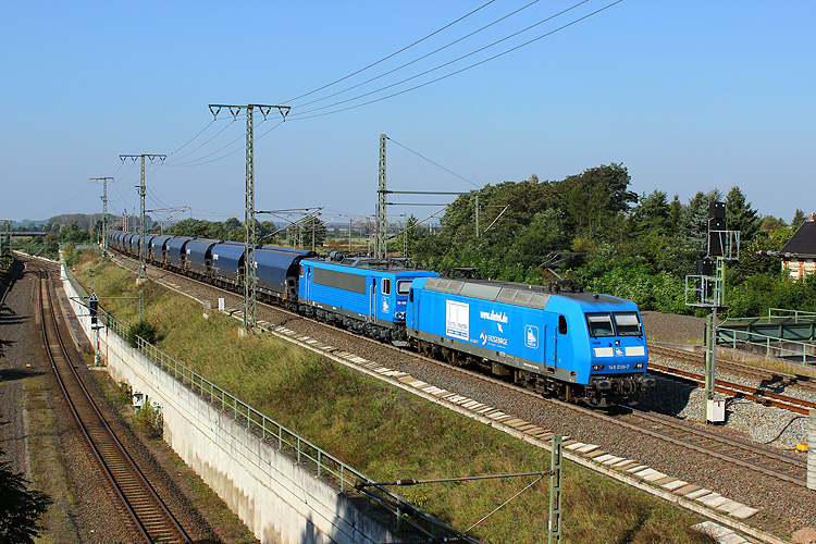 Der erste Einsatz der nun in Diensten der Press stehenden 155 045 (ex DB 155 238) führte diese nach Hamburg. Die Rückfahrt ging am 18.09.2014 über Stendal, aber leider nur als Wagenlok hinter 145 030. |