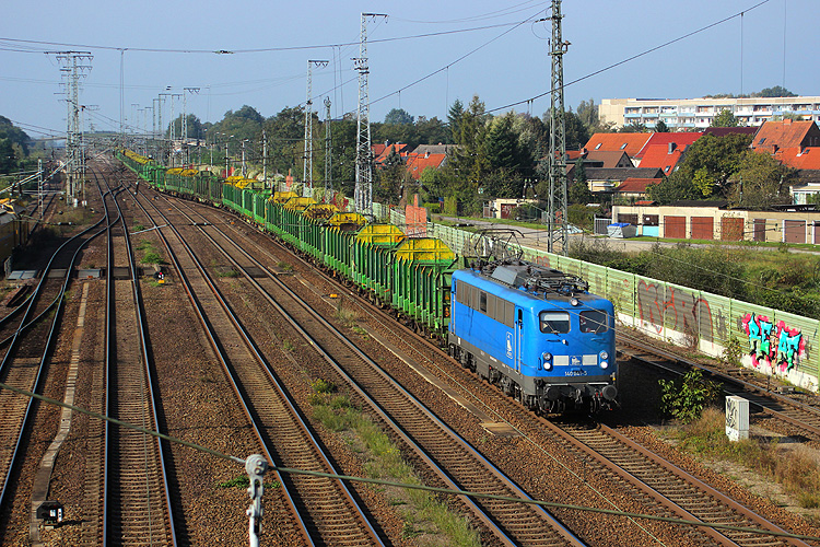 MEG 603 holte am 07.09.2014 Reisezugwagen aus Rostock ab, die nach dem Ende der Kreuzfahrt-Saison dort nicht mehr gebraucht wurden. |