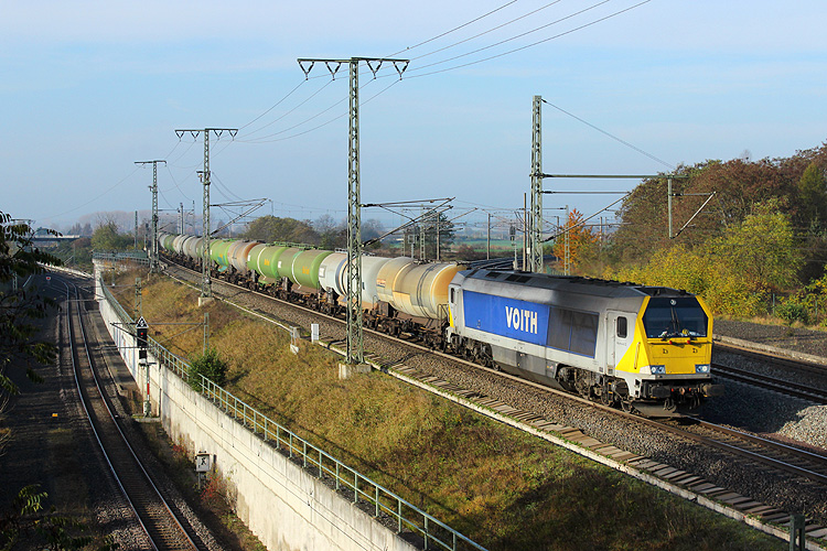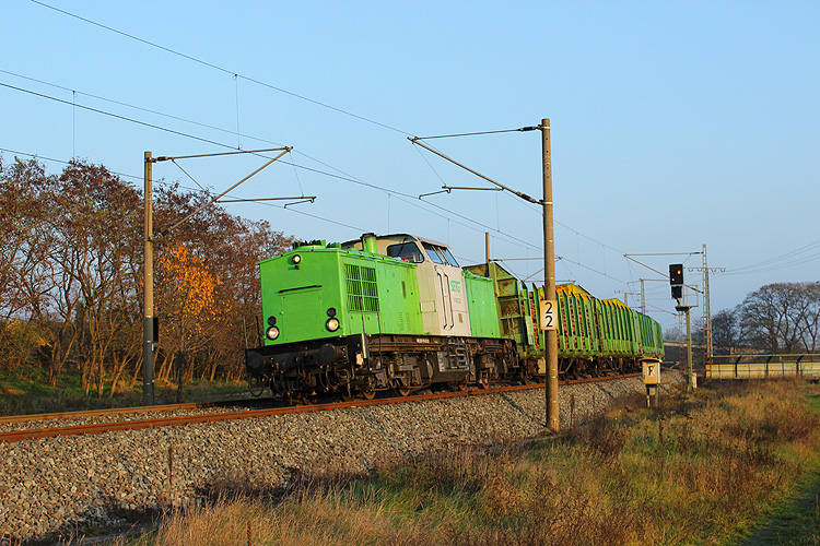 Am 09.11.2014 kam die Voith 264 001 mit einem Kesselzug aus Richtung Salzwedel nach Stendal und fuhr mit diesem in Richtung Magdeburg weiter. |