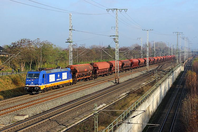 185 409 durchfuhr mit einem Düngerzug nach Poppendorf am 21.11.2014 Stendal. |