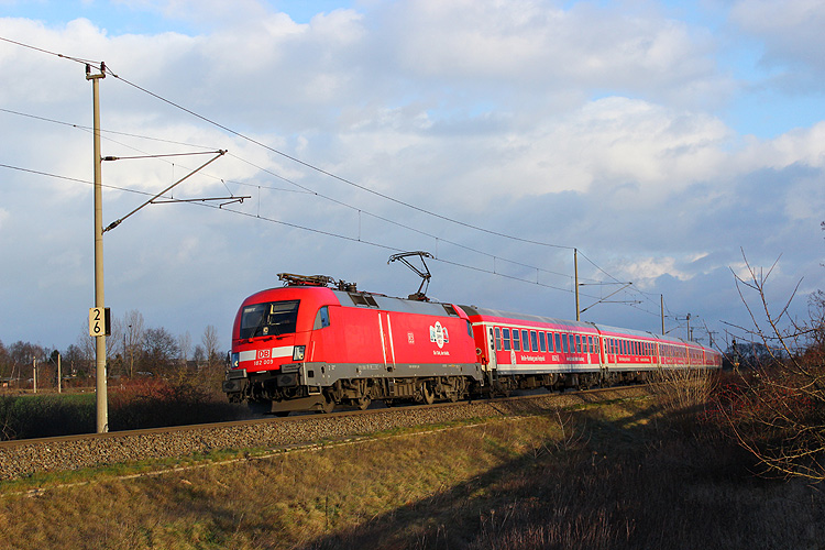 Das IRE-Paar Berlin - Hamburg und zurück ist nun Aufgabe der Cottbusser 182. Am 04.01.2015 brachte 182 009 den IRE 18098 nach Hamburg. |