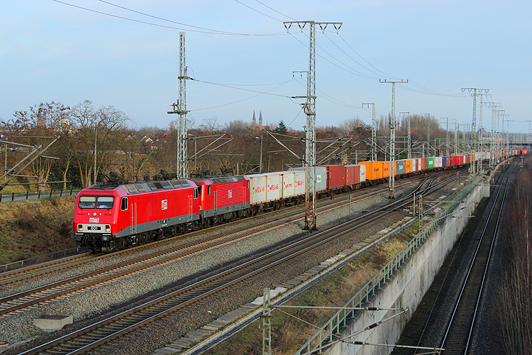 Die spannendste Frage am Samstagnachmittag ist immer, welche Lok die MEG dieses Mal vor den Containerzug Leipzig - Hamburg gespannt hat. Am 17.01.2015 war das gemischte Doppel 801 + 603 mit dem Zug unterwegs. |