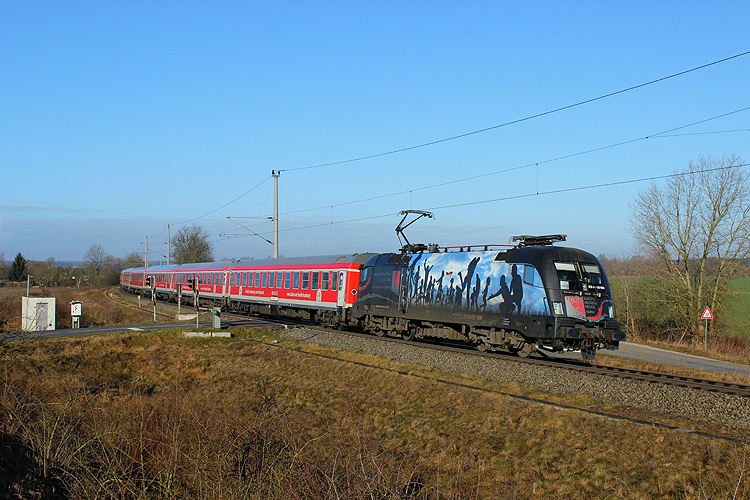 Die Werbelok 182 509 bespannt nun die als Ersatz für das EC-Paar "Wawel" eingelegten IRE Hamburg - Berlin - Hamburg, hier mit dem IRE 18093 am 28.02.2015. |