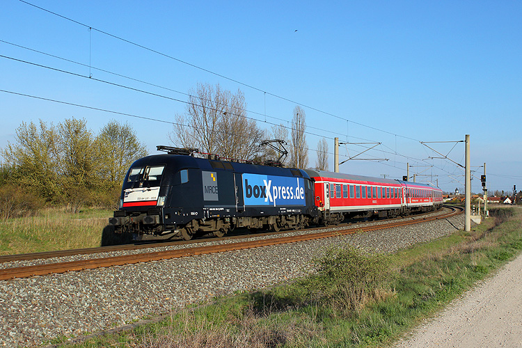 Später mußte 182 508 von MRCE / Boxxpress mit dem IRE 18092 Berlin - Hamburg wieder den Umweg über Wittenberge fahren, weil die Salzwedeler Strecke wegen Bauarbeiten gesperrt war. |