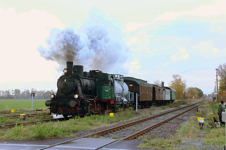 Am 07.11.2021 war VBV 102 anläßlich des Bahnhofsfestes Oebisfelde mit Pendelfahrten nach Rätzlingen betraut und macht sich hier gerade auf die Rückfahrt nach Oebisfelde. |