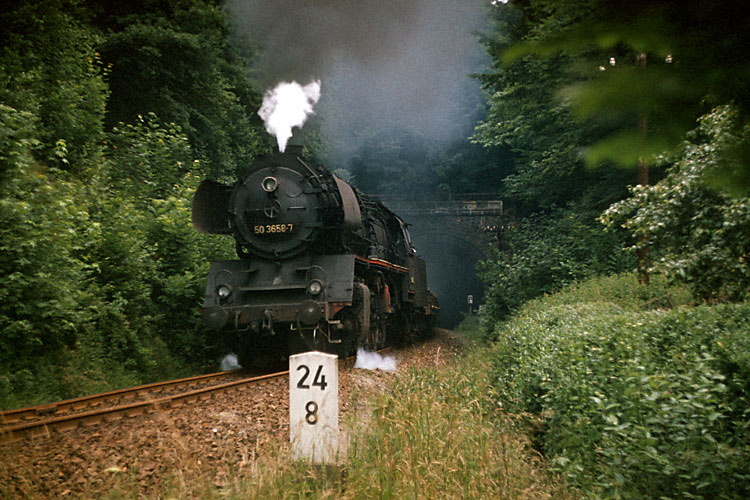 Mit dem Gag 56355 hat 50 3658 den Rochsburger Tunnel durchfahren, 25.06.1983. |