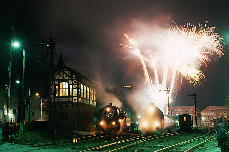 Der Jahreswechsel wurde im Bahnhof Thale gefeiert, ein professioneller Feuerwerker vertrieb die bösen Geister. |