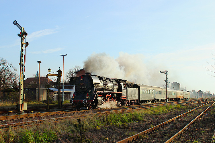 Am 06.12.2015 waren die Staßfurter Eisenbahnfreunde mit ihrer 44 1486 zum Weihnachtsmarkt nach Wolfsburg unterwegs. Da die Fahrt über Haldensleben ging, ließ ich mir die Gelegenheit nicht entgehen, den Zug im passenden Ambiente dort aufzunehmen.