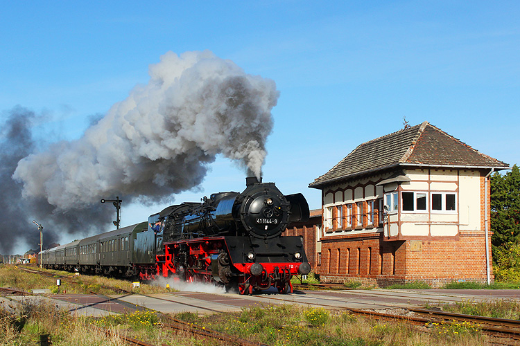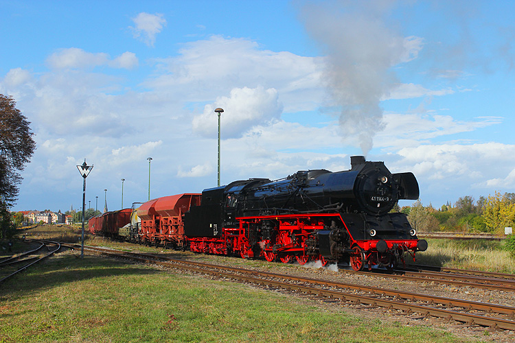 Am 02.10.2022 ging es nach vielen Jahren mal wieder zum Dampflokfest nach Staßfurt. Vor dem Fotogüterzug war unter anderem Gastlok 41 1144 zu sehen. |