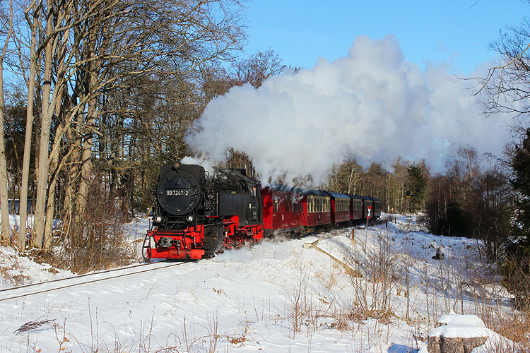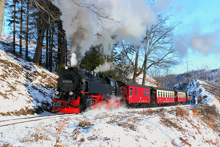 Am 20.01.2024 lud das schöne Winterwetter zu einer Harztour ein. Zunächst ging es an die Harzer Schmalspurbahn zwischen Steinerne Renne und Drei Annen Hohne - 99 7232 mit dem P 8943 Wernigerode - Brocken. |