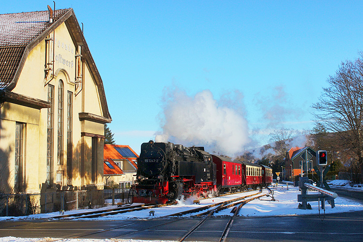 Für den nächsten Zug ging es noch einmal runter nach Wernigerode-Hasserode - 99 7247 mit dem P 8903 Wernigerode - Eisfelder Talmühle. |