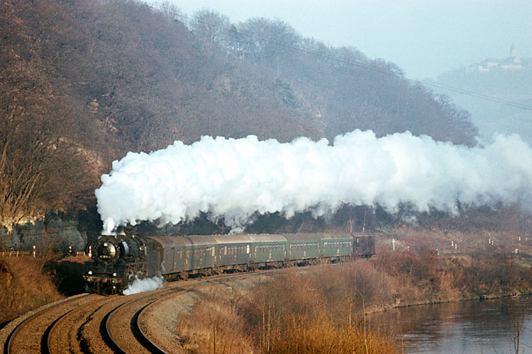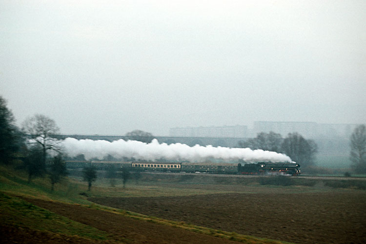 Mein Abschiedsbild vom Abschied - 01 1531 mit dem verspäteten D 503 aus Stralsund versucht bei Göschwitz noch etwas Zeit gutzumachen, 29.11.1986. Das wäre es eigentlich zum Thema in Thüringen gewesen - doch endgültig dampffrei wurde die berühmte Saalebahn damit noch nicht. Deshalb gibt es mit Seite 6 noch einen Nachschlag. |