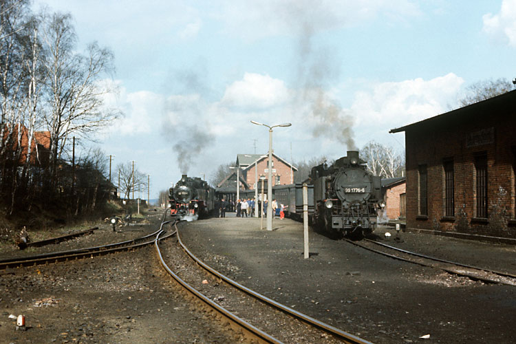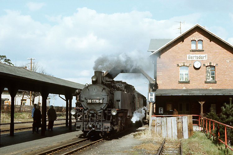 Nun hat 99 1758 mit dem Zug den Trennungsbahnhof Bertsdorf erreicht. |