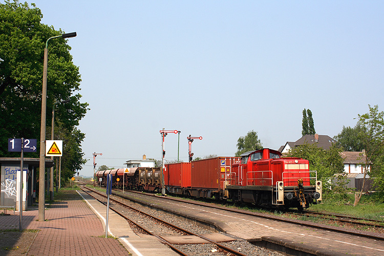 294 607 rollt mit dem Nahgüter Haldensleben - Magdeburg Rothensee in das Überholgleis von Groß Ammensleben ein, um mit einer Regionalbahn zu kreuzen, 29.04.2011. |