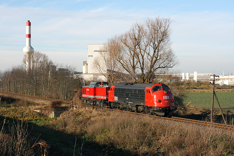 Nach einem Werkstattbesuch in Haldensleben machen sich MY 1131 und 202 738 vom Erfurter Bahnservice auf die Heimreise, 25.11.2011. |
