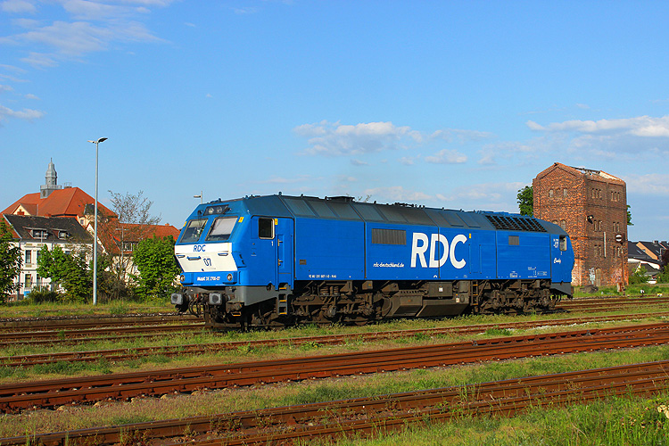 Als am 13.05.2023 die für NRS fahrende RDC 251 007 auf Ausfahrt nach Forsthaus Eiche wartete, war das Dach des alten Wasserturmes bereits eingestürzt. |