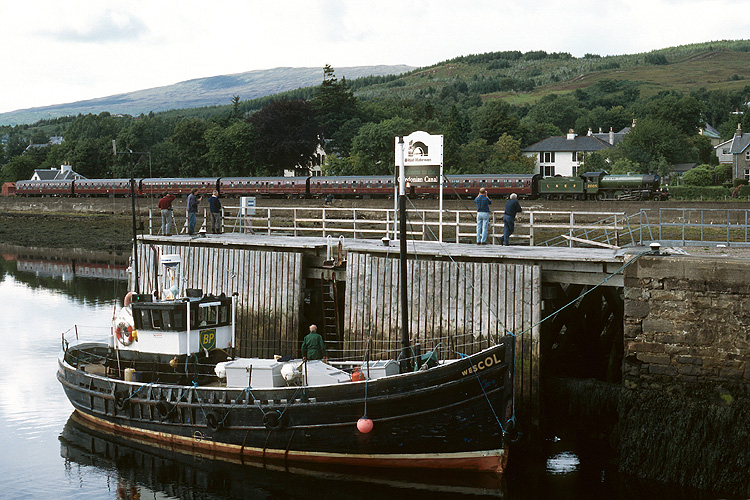 Die Rückfahrt des Zuges machte ich unter anderem an der Einfahrt zum Caledonian Canal in Corpach. |