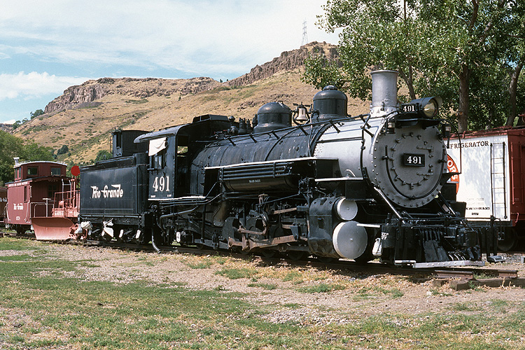Die Schmalspurlok 491 stammt ebenfalls von der Denver& Rio Grande Railroad, Baujahr 1928. Diese Loktype sollten wir im Verlauf der Reise noch im Einsatz erleben. |